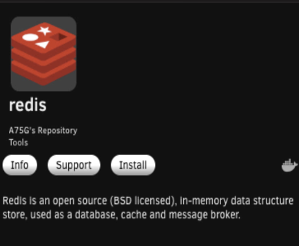 Back to the Apps tab. Search for Redis and install the Bitnami version in A75G's repository. This guide assumes you're securing Redis with a password rather than allowing empty passwords.