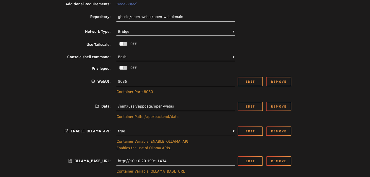 The only thing you need to fill in is the Ollama IP, which is the IP address of the Unraid server that's running Ollama.