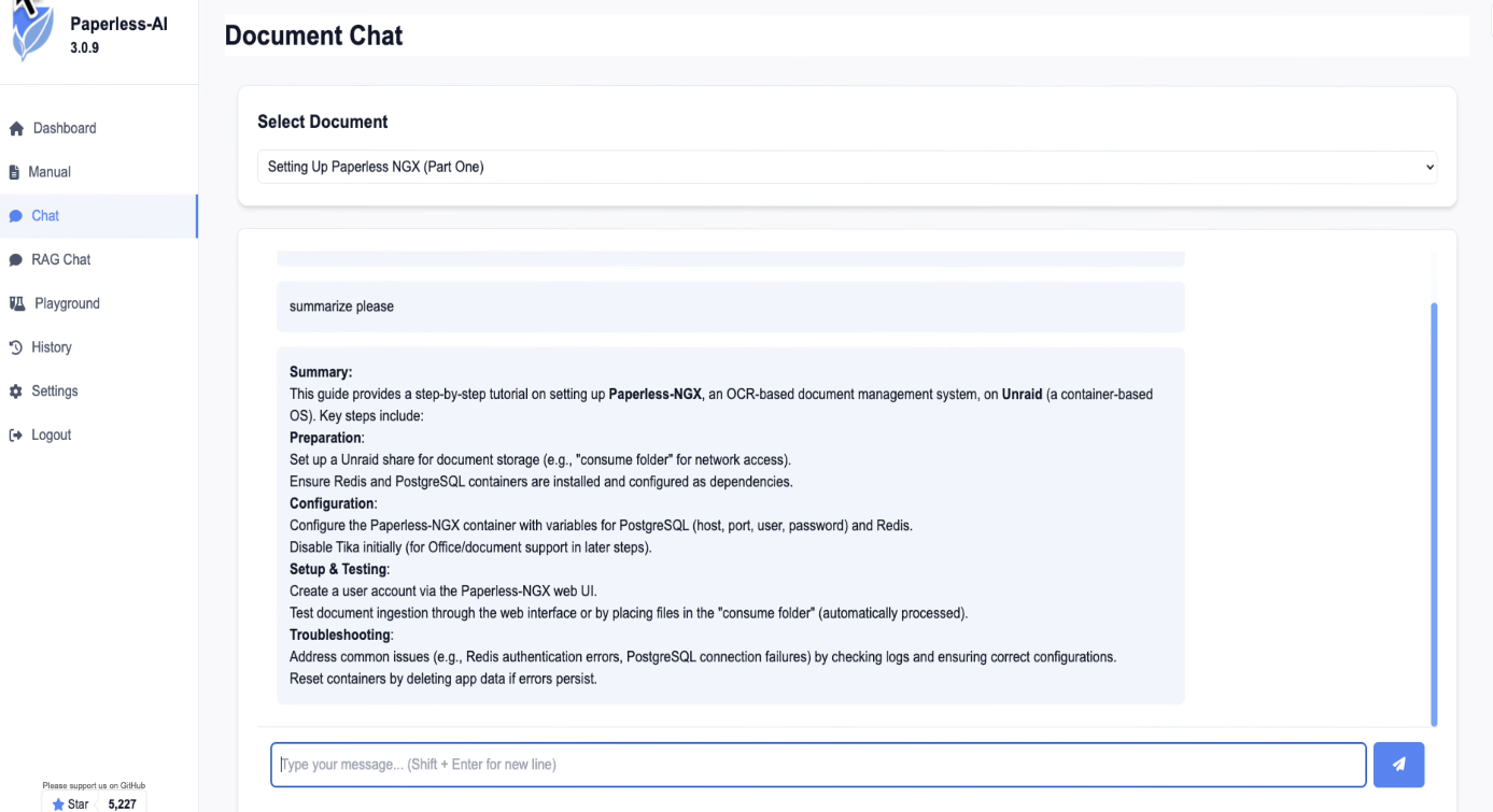 And because the content is better now, Paperless AI can give you more accurate answers about that document too. You could open Paperless AI, go into the chat, select that document, and ask it questions based on the improved content.